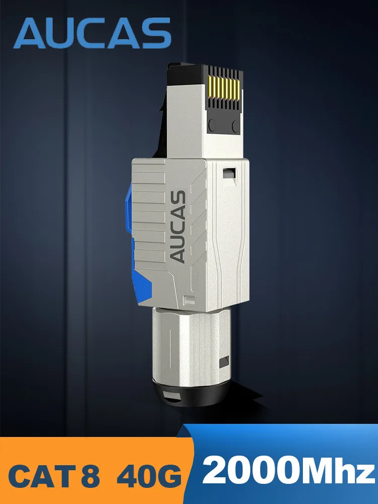Category Name : Brand Name: Aucas Origin: CN(Origin) Type: Connectors Certification: CE Certification: FCC Certification: RoHS Package: Yes Products Status: STOCK Model Number: ACKJ82FPRJBU Transfer speed: 40Gbps Material: Zinc alloy shielded shell Interface: RJ45 Terminal technology: 50μ gold-plated technology Crimping method: No tools are needed Catagory: Cat.8/Cat.7/Cat.6 Transmission frequency: 2000Mhz